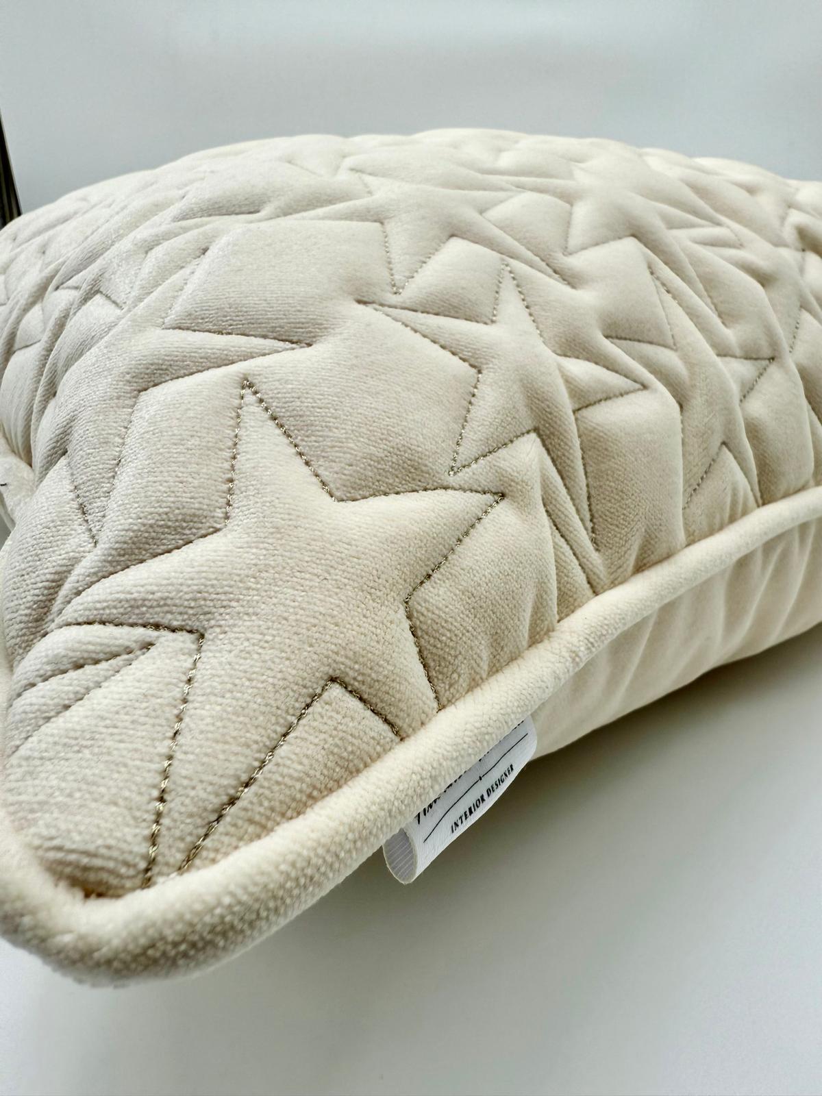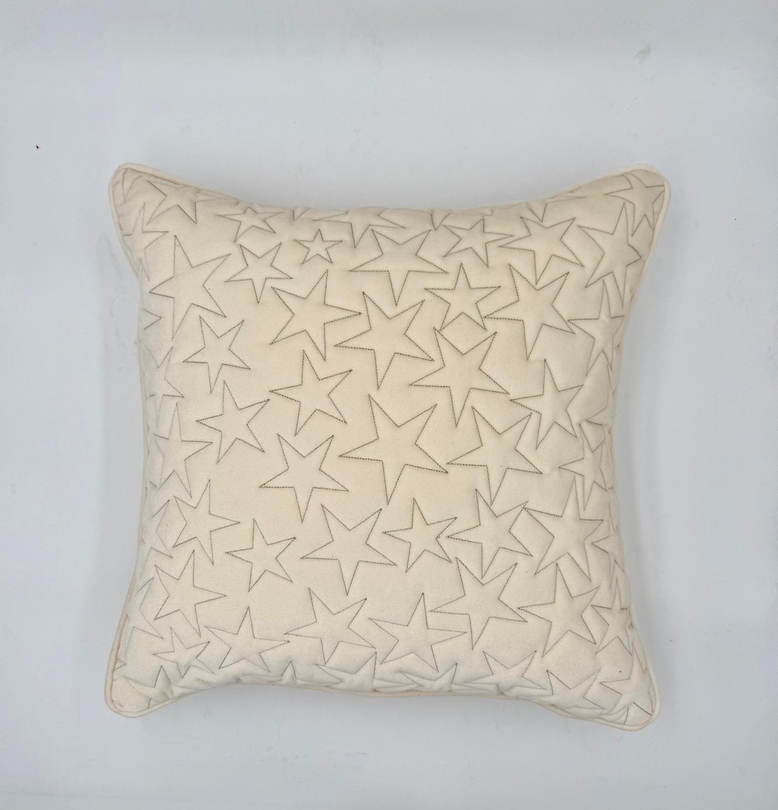 Cuscino Stella 50×50 in velluto liscio antimacchia con ricamo a stella , compreso di interno.
