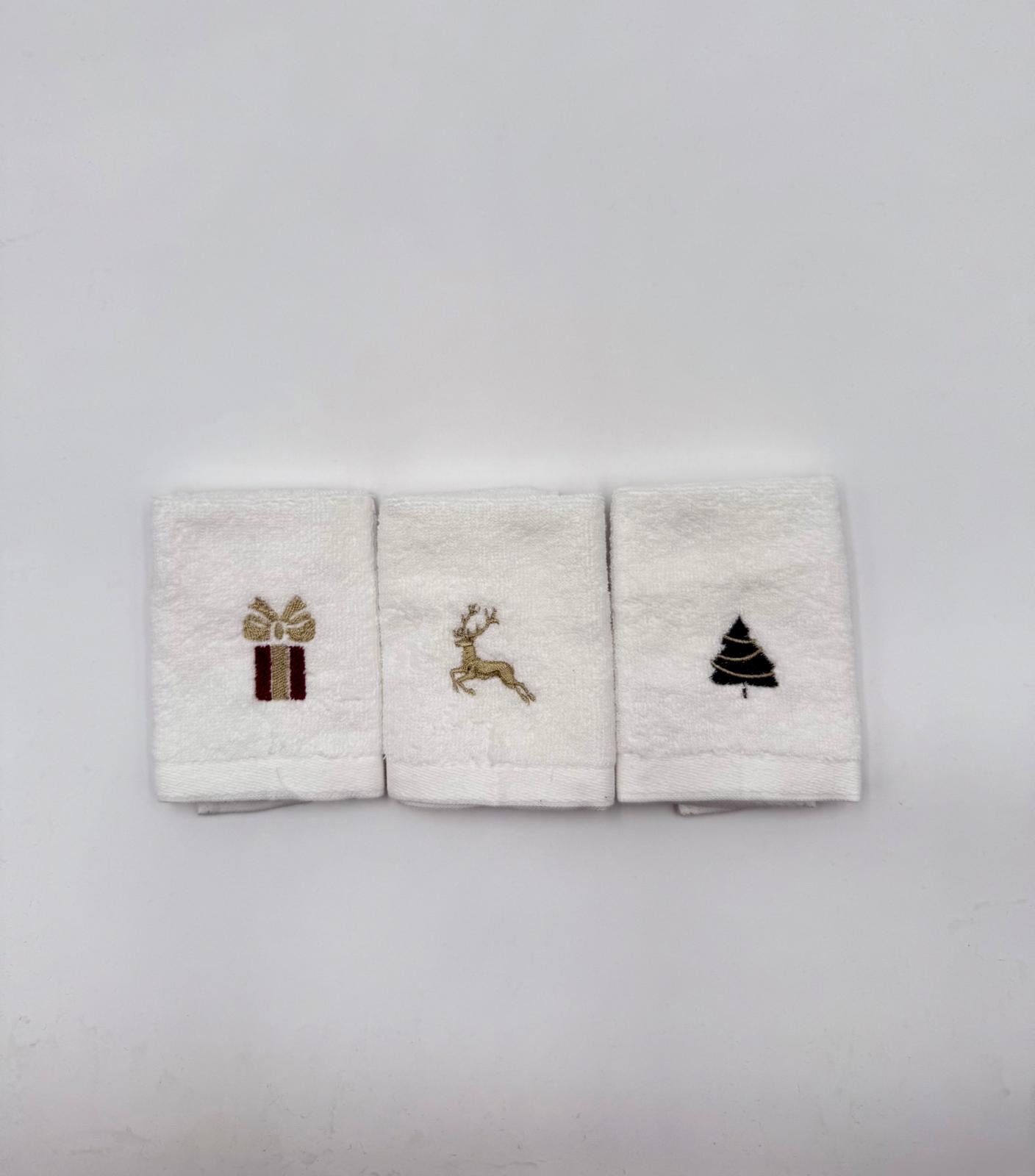 Tris Lavette 25×25 Spugna Bianco con ricamo natalizio